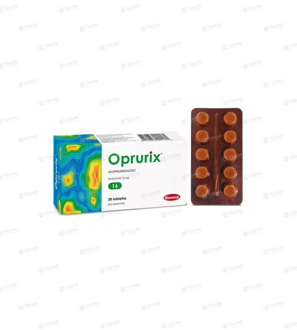 Principio activo: Oclacitinib (como maleato)Cada tableta contiene: OPRURIX 3.6…………………… 3.6 mg OPRURIX 5.4…………………… 5.4 mg OPRURIX 16……………………. 16 mg